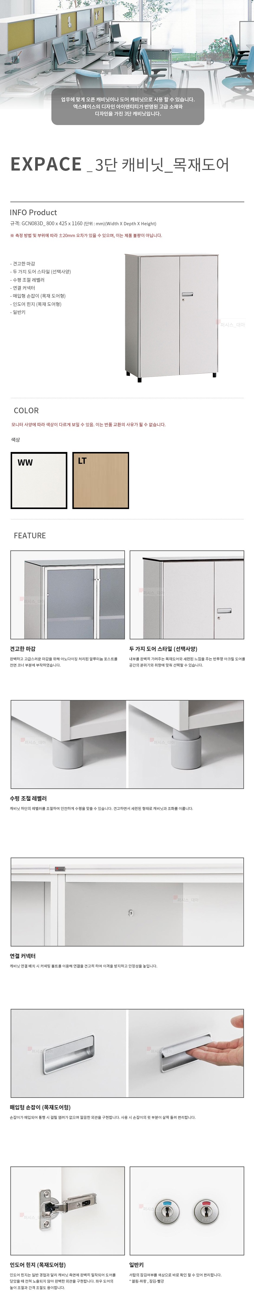 EXPACE 3단 캐비닛 목재도어 GCN083D