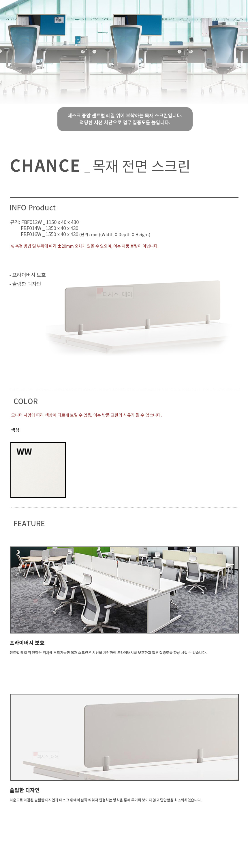 CHANCE 목재 전면 스크린 FBF012W FBF014W FBF016W