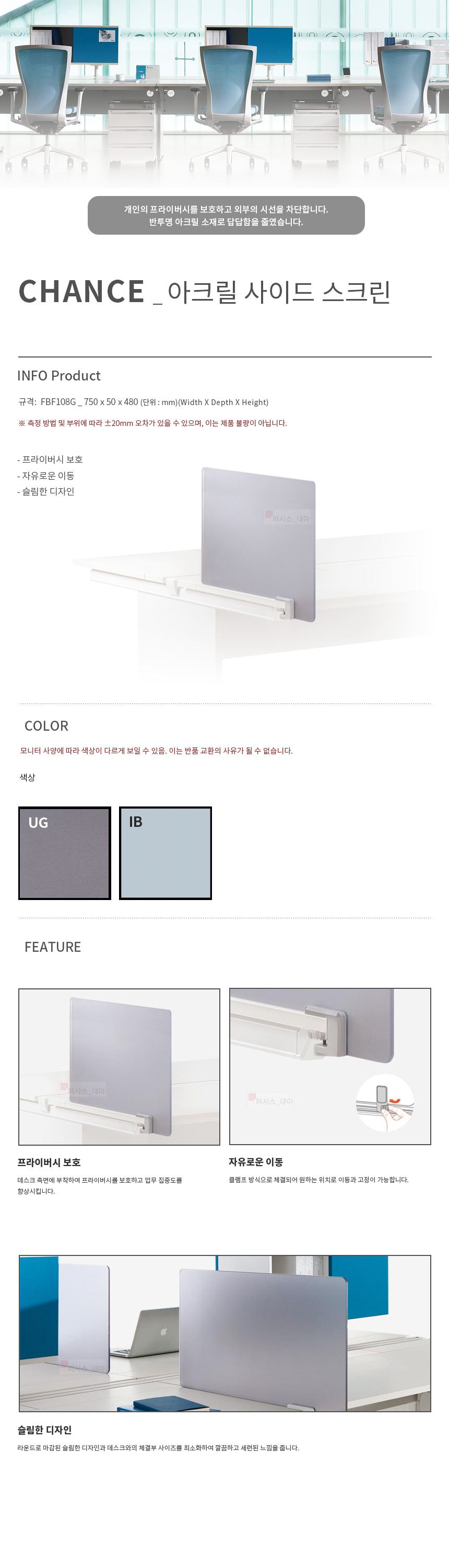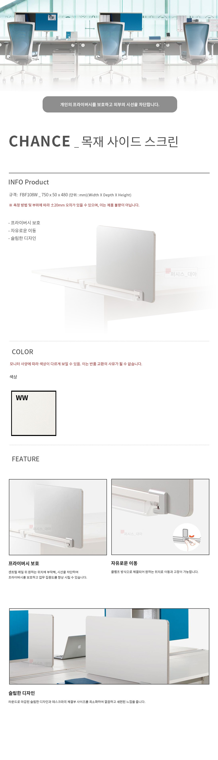 CHANCE 목재 & 아크릴 사이드 스크린 FBF108W FBF108G