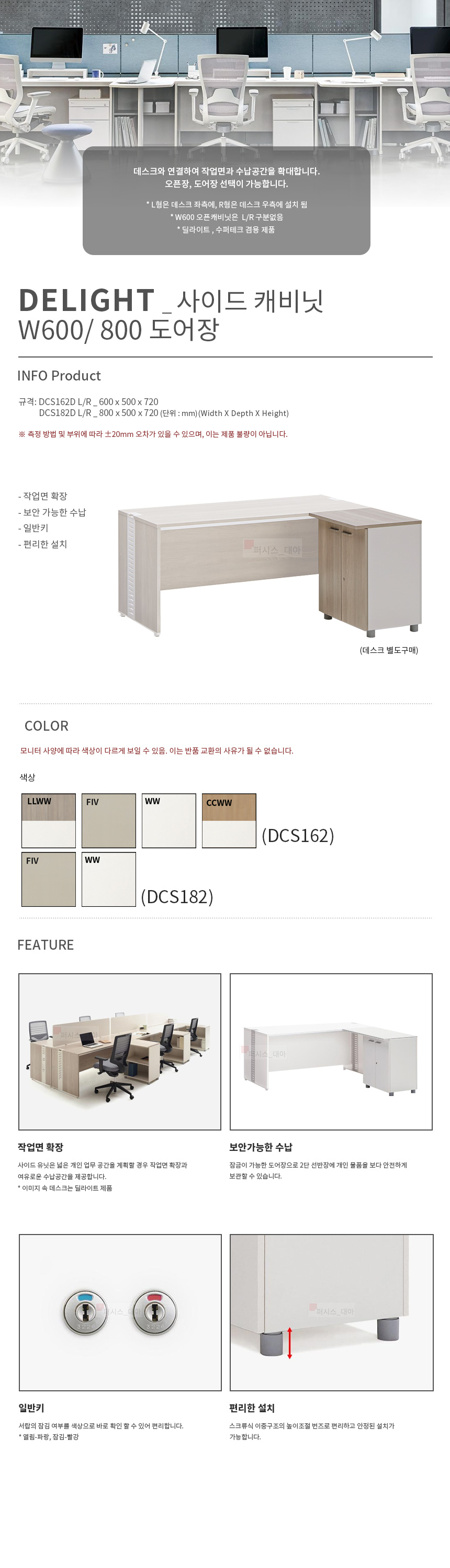 DELIGHT 사이드 캐비닛 W600/800 도어장 DCS162D L/R DCS182D L/R
