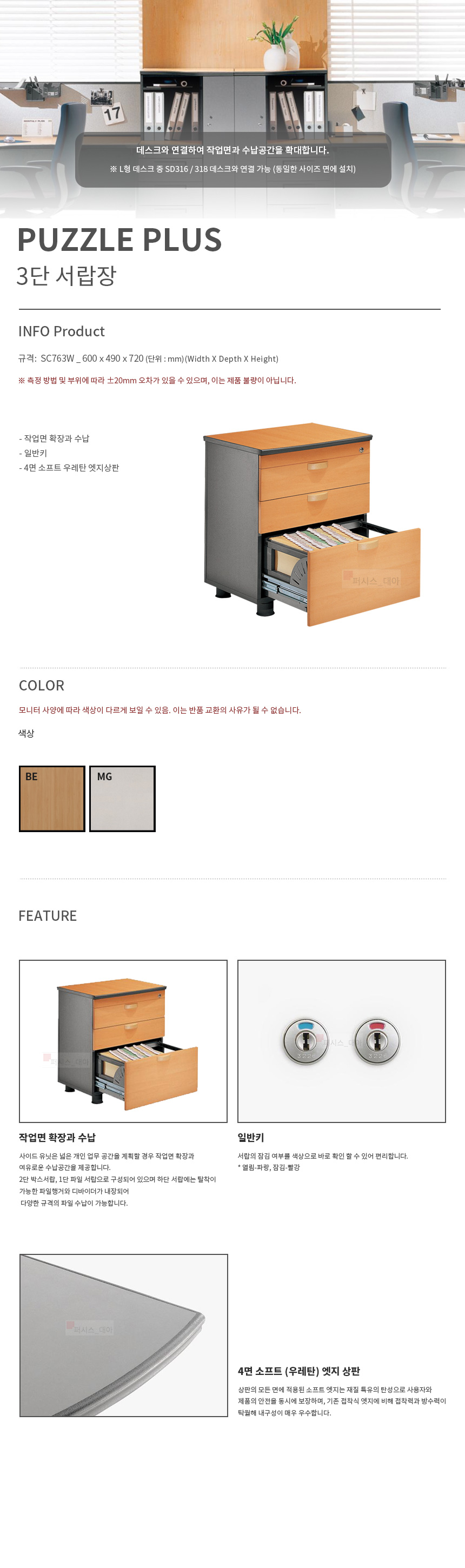PUZZLE PLUS 3단 서랍장 SC763W