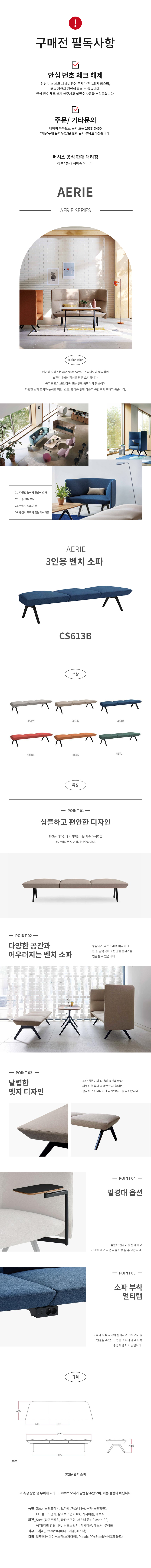 AERIE 3인용 벤치 소파 CS613B